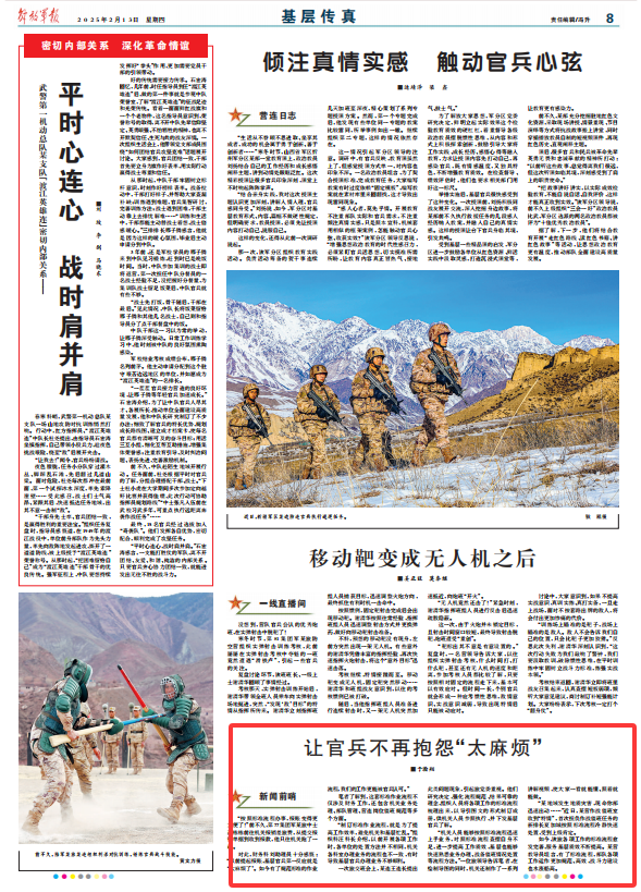 如今,该旅各项工作的标准流程愈发完善,服务基层质效不断提高。某营教导员坦言,有了标准流程,部队各项工作运作更加规范、高效,战斗力建设也水涨船高。