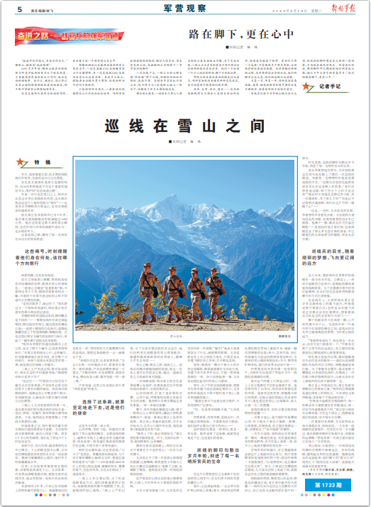 穿梭在沉寂千万年的山脉与冰川之间,巡线兵的脚印像是雪山间的一道划痕,片刻就会被风雪抹去。但官兵们知道,那些脚印早已镌刻进他们的军旅之路,融汇于平凡坚守的青春岁月:“我们的路在脚下,更在心中。”