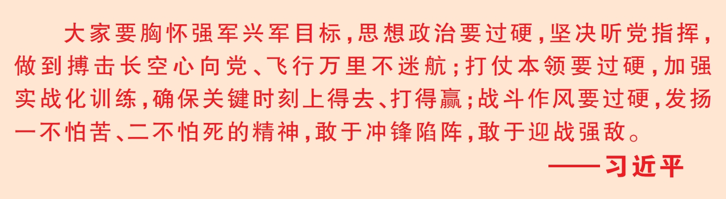 牢记统帅嘱托,打好攻坚之战。该师官兵认真学习贯彻“三个要过硬”要求,聚焦如期实现建军一百年奋斗目标,苦练精训、加快转型,不断飞出制胜打赢的新航迹。
