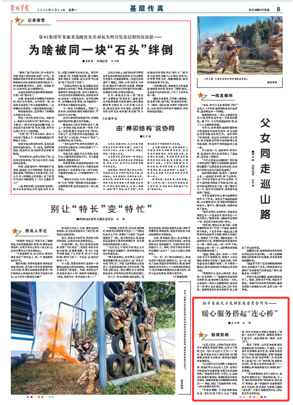 “军功章里凝结着军人的汗水,也饱含军属的付出。”该旅领导说,下一步,他们将继续秉承“精准服务、惠及官兵”的理念,进一步创新和完善家属保障工作机制,搭好部队与家属之间的“连心桥”,为官兵创造更加安心、舒心的工作生活环境。