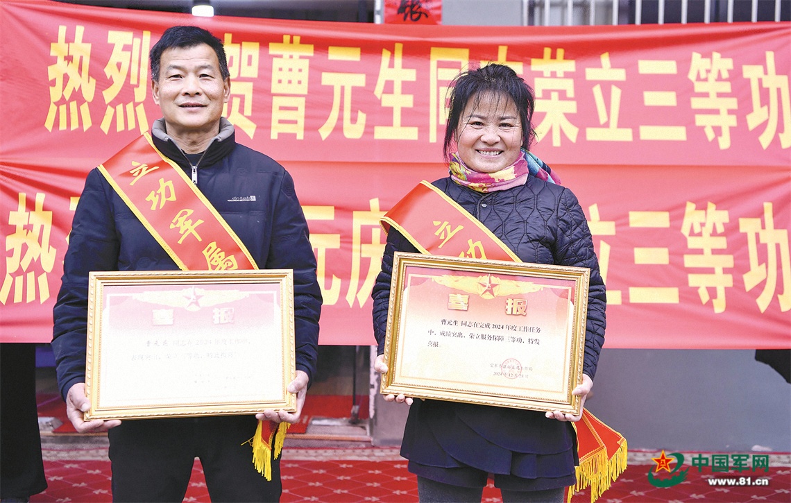 送喜报现场,面对众多前来道贺的邻里乡亲,兄弟俩的父亲曹培荣有些激动:“当兵就要立军功!作为军属,我们要继续当好坚强后盾,让他俩在部队安心工作,争取再立新功。”