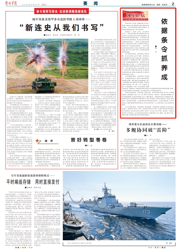 点点滴滴抓养成。抓好养成,重在细节。克劳塞维茨说过:“整体只能依靠整体来维持,就像一块冷却得太快的玻璃一样,一道裂缝就可以使整体完全破裂。”抓养成必须从官兵的一举一动、一言一行抓起,大到一个训练课目,小到一个队列动作,都要严抓细管、严抠细训,不能留有盲区和死角;必须坚持用条令条例规范战备、训练、工作和生活秩序,努力做到一日生活条令化、日常养成制度化。