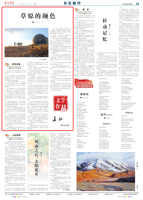 第二天,站长点名表扬了韦心矿,战友们也纷纷给他竖起大拇指。那天,他给家里打电话,激动地讲述了昨天战风斗沙的故事,脸上洋溢着幸福的笑容。王旭东虽然听不懂他讲的家乡方言,但他看得出来,一颗守边疆的种子正在韦心矿心里发芽。