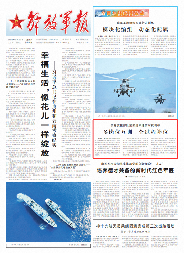 据了解,下一步,该部将持续加强一专多能复合型人才培养,紧贴实战开展岗位交叉互训,确保平时能应急、战时能应战,不断提升部队作战支援保障能力。