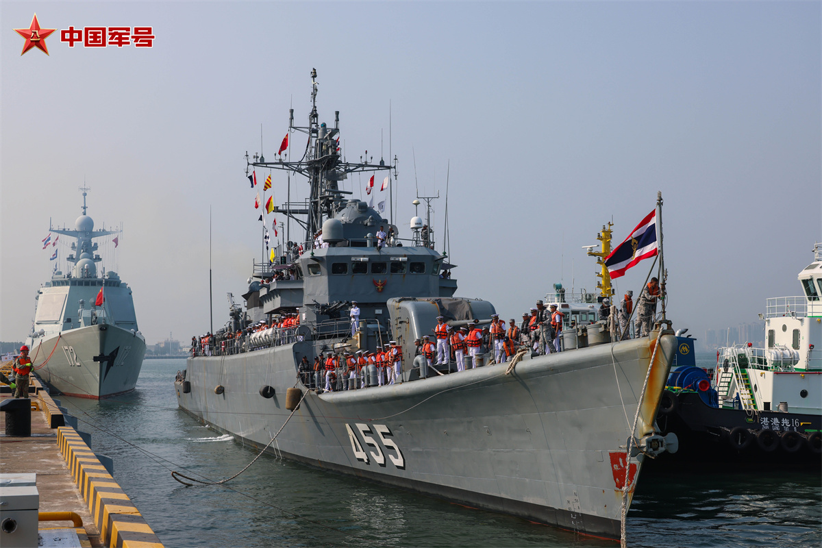 今天(25日)上午,泰方联训兵力抵达湛江某军港,中方在码头举行热烈欢迎仪式。