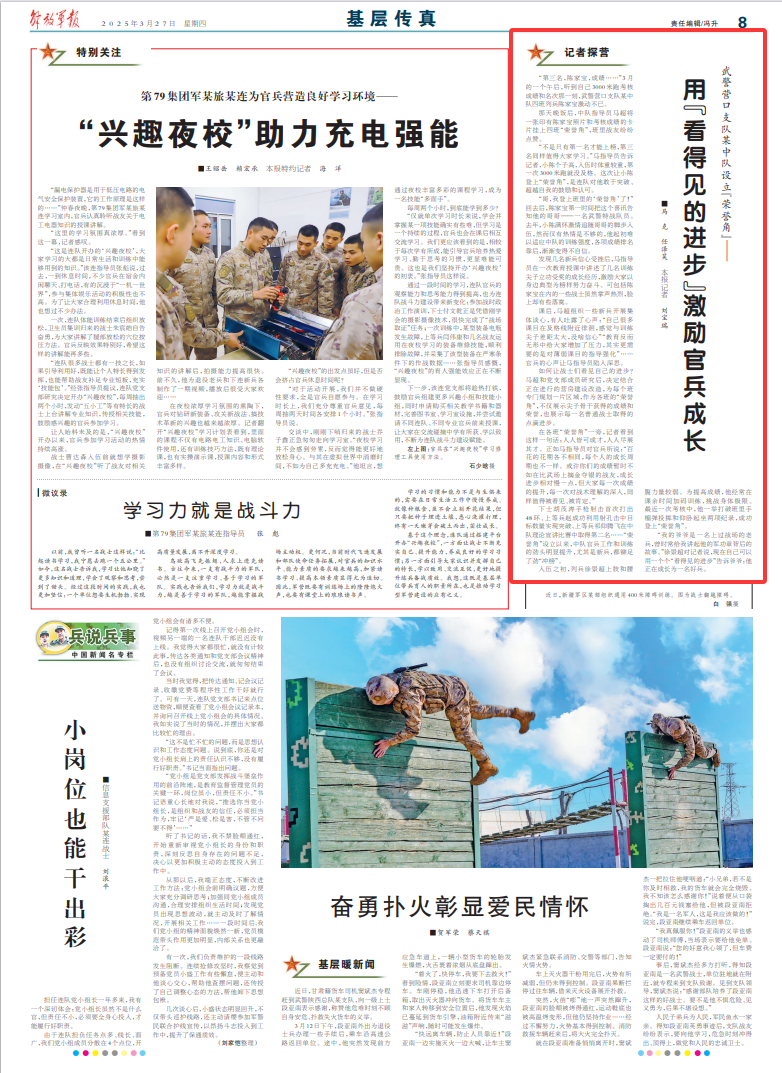 用“看得见的进步”激励官兵成长