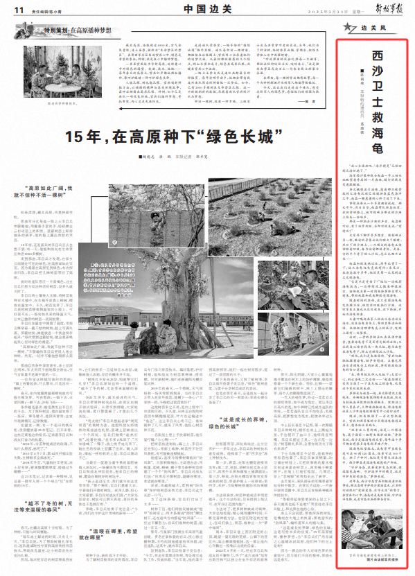 近年来,西沙守岛官兵积极投身环保事业,倾注真情守护西沙碧海蓝天,以实际行动践行“爱国爱岛、乐守天涯”的誓言。在官兵们心中,海岛就是美丽家园,守护海洋生物,也是守岛水兵的神圣责任。