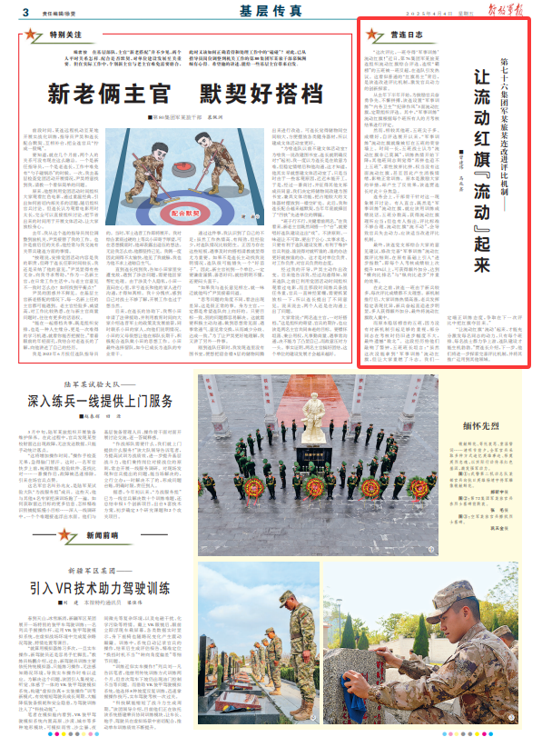 “让流动红旗‘流动’起来,才能充分激发每名同志的动力,只有每个班排、每名战士都力争上游,连队建设才能生机勃勃。”贾连长介绍,下一步,他们将进一步探索完善评比机制,并将其推广运用到其他领域。