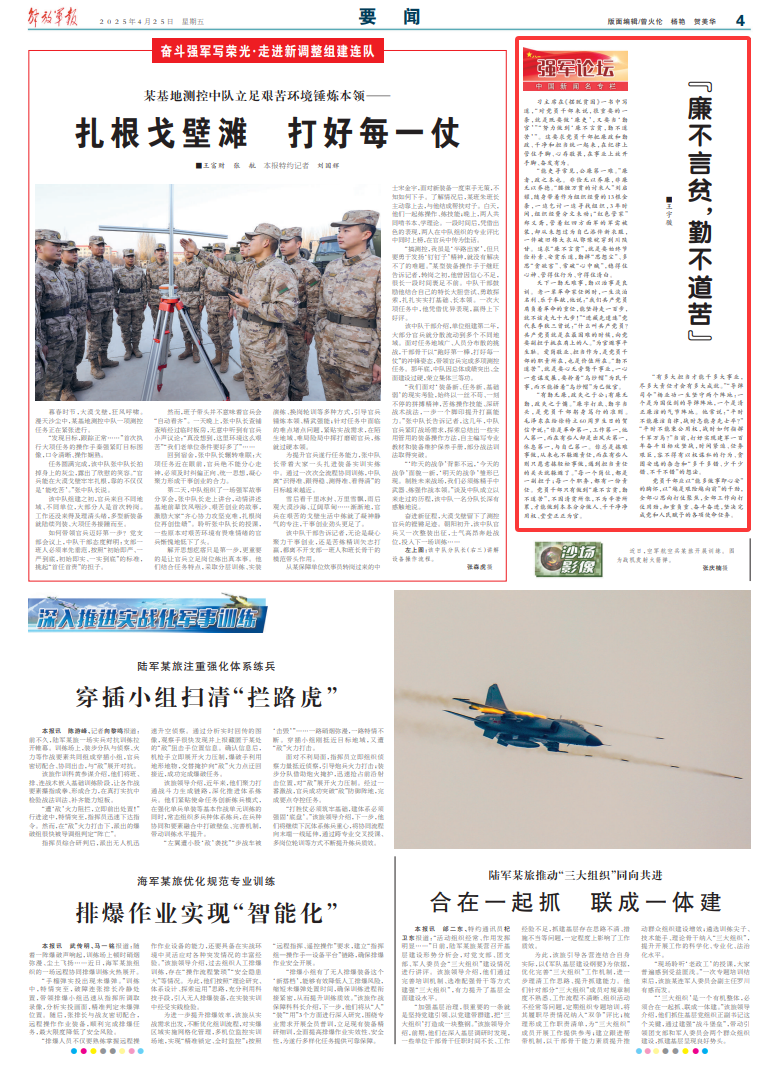 “有多大担当才能干多大事业,尽多大责任才会有多大成就。”“导弹司令”杨业功一生坚守两个阵地:一个是为国仗剑的导弹阵地,一个是清正廉洁的气节阵地。他常说:“平时不能廉洁自律,战时怎能身先士卒?”“平时不能秉公用权,战时如何指挥千军万马?”当前,打好实现建军一百年奋斗目标攻坚战,时间紧迫、任务艰巨,容不得有以权谋私的行为、贪图安逸的杂念和“多干多错、少干少错、不干不错”的想法。