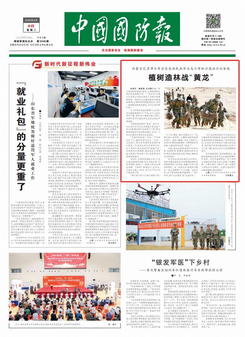 为植树造林锁住“黄龙”,2011年,巴彦淖尔军分区在永明海子和总排干沟(河套灌区排水系统骨干工程)附近地域划定近万亩试验治理区,发动广大民兵打响治沙保河生态攻坚战。