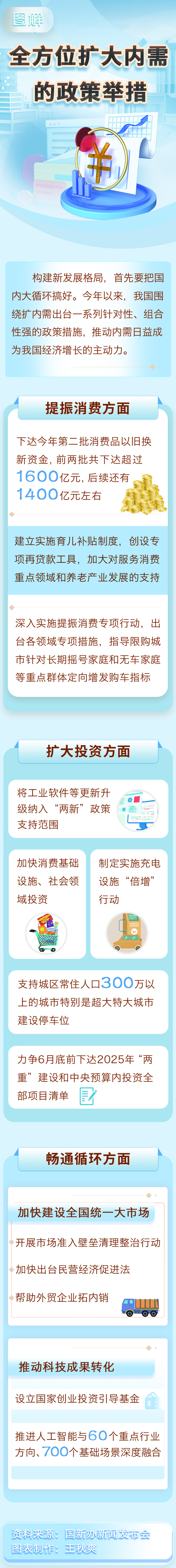 内部可循环、内需为主导,是大国经济的独有优势。着眼畅通国内大循环,牢牢把握扩大内需这个战略基点,中国始终在行动。5年来,中央经济工作会议连续对扩大内需进行部署,去年的会议将“大力提振消费、提高投资效益,全方位扩大国内需求”摆在2025年重点任务首位。