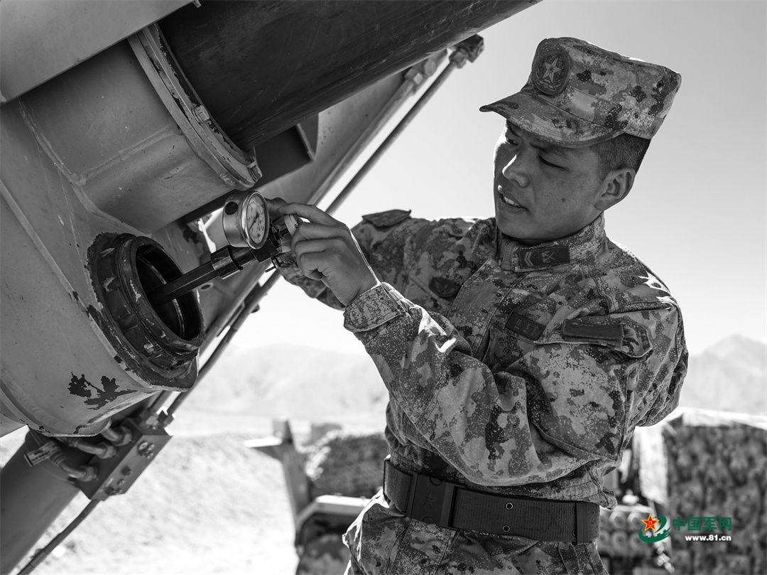 正在高原驻训的新疆军区某团严格落实装备管理有关规定,扎实开展装备维护保养工作,强化官兵依法管装意识。杨琪 摄