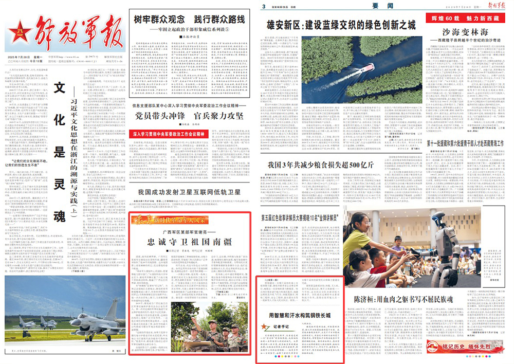 采访谢亮的过程中,记者感受到一位“老边防”的坚韧执着,也深切体会到一名年轻军人的创新锐气。从界碑旁的一丝不苟,到实验室里的精益求精;从陆海边防线上的长途跋涉,到指挥中心内的运筹帷幄……他用多年如一日的坚守,诠释了新时代革命军人的担当。