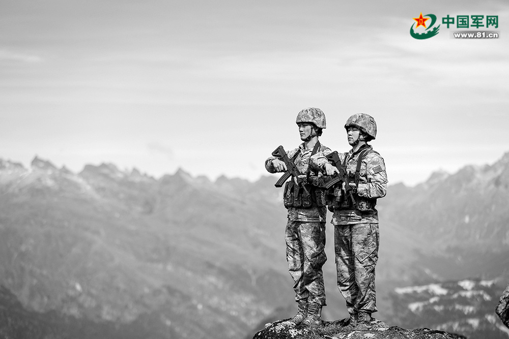 西藏山南军分区无名湖哨所官兵在执勤中。