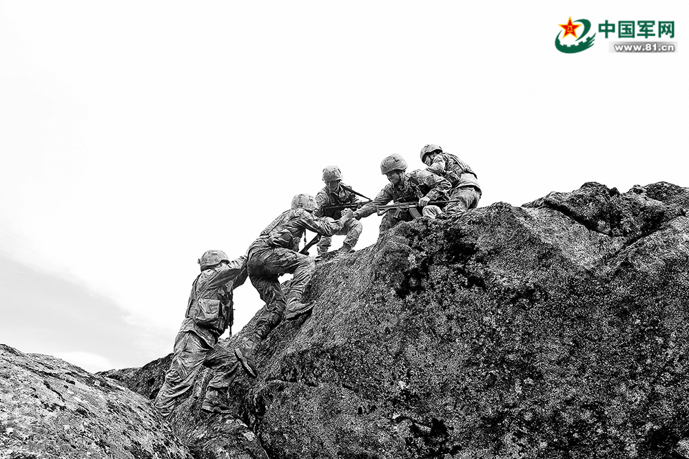巡逻路上,大家互帮互助攀登陡坡。