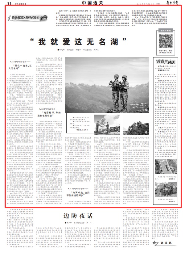 采访快要结束,记者问梁指导员:“就像哨所的名字一样,‘无名’是许多官兵的戍边写照,大家心中会不会感到委屈?”他用了另一句歌词回答这个问题:“你要问那里苦不苦,我呀就爱这无名湖……无名就是一种幸福。”