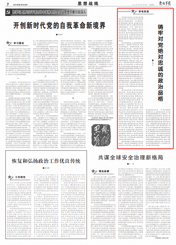 铸牢对党绝对忠诚的政治品格