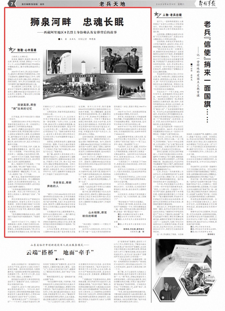 2024年9月29日,烈士纪念日的前一天,退役军人事务部召开新闻发布会,介绍了在国家烈士遗骸搜寻鉴定工作中,为阿里地区8名无名烈士确认身份、找到亲人的相关情况。如今,烈士们忠魂长眠,永远守护着那片他们抛洒青春热血的土地。
