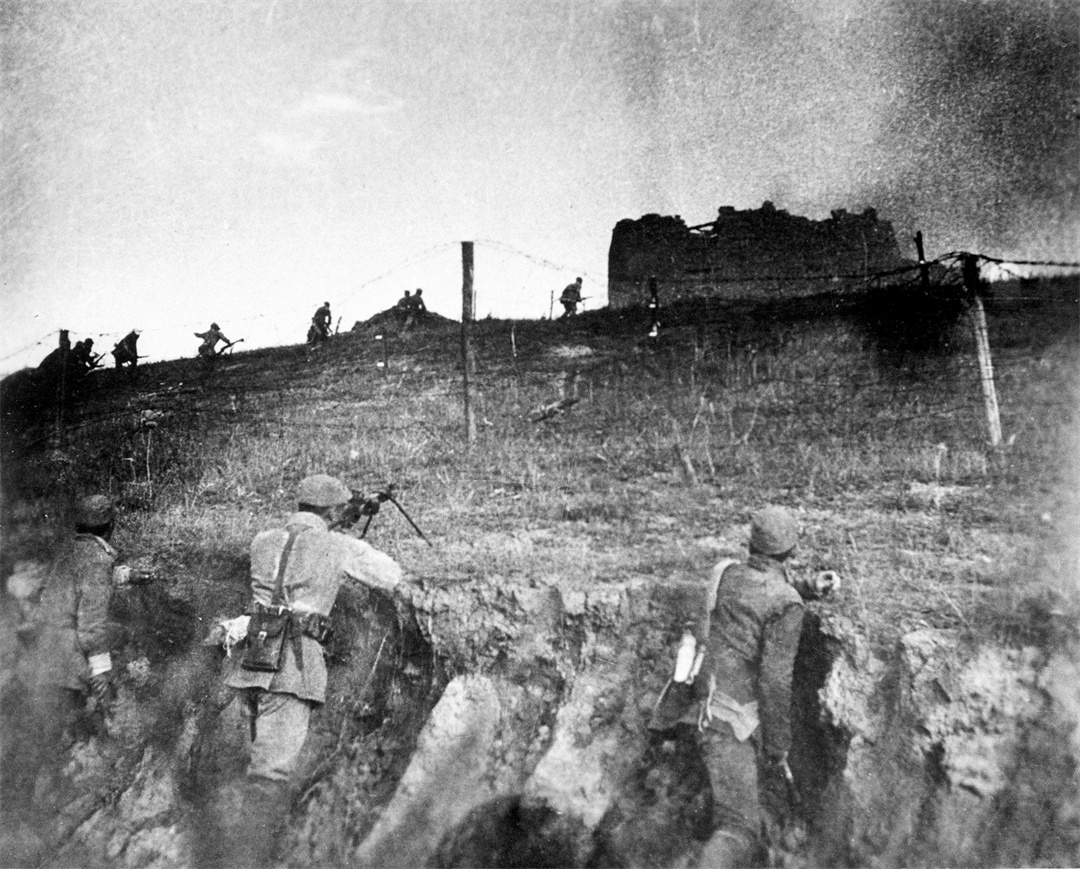 1944年9月14日夜,晋绥部队攻入晋中战略要地汾阳。图为官兵向敌碉堡进攻。