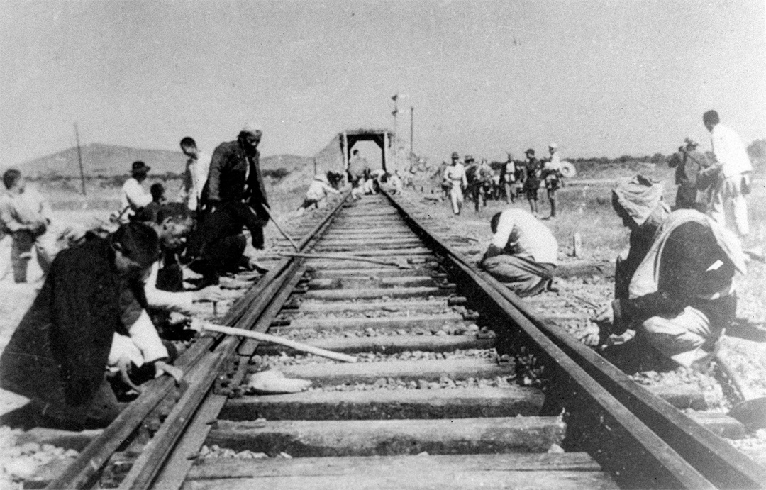1945年秋,新四军第4师主力向津浦路徐州、固镇段拒绝投降的日军发动进攻。图为当地群众协助部队拆毁徐州至蚌埠间的铁路。