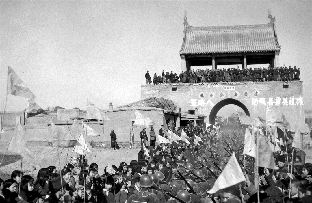 鄚州人民热烈欢迎八路军入城。