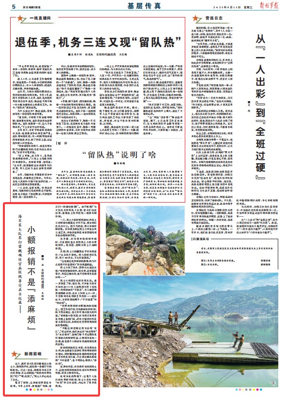 在司务长的帮助下,这笔个人垫付的车费顺利报销,魏士杰想象中的“麻烦”并没有出现,内心有了更多获得感。