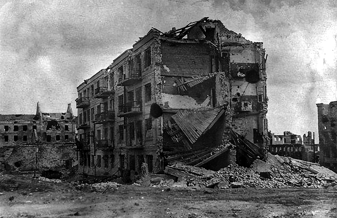 1943年拍摄的巴甫洛夫大楼,驻守的苏军战士在此顽强抵挡了德军58日。资料图片