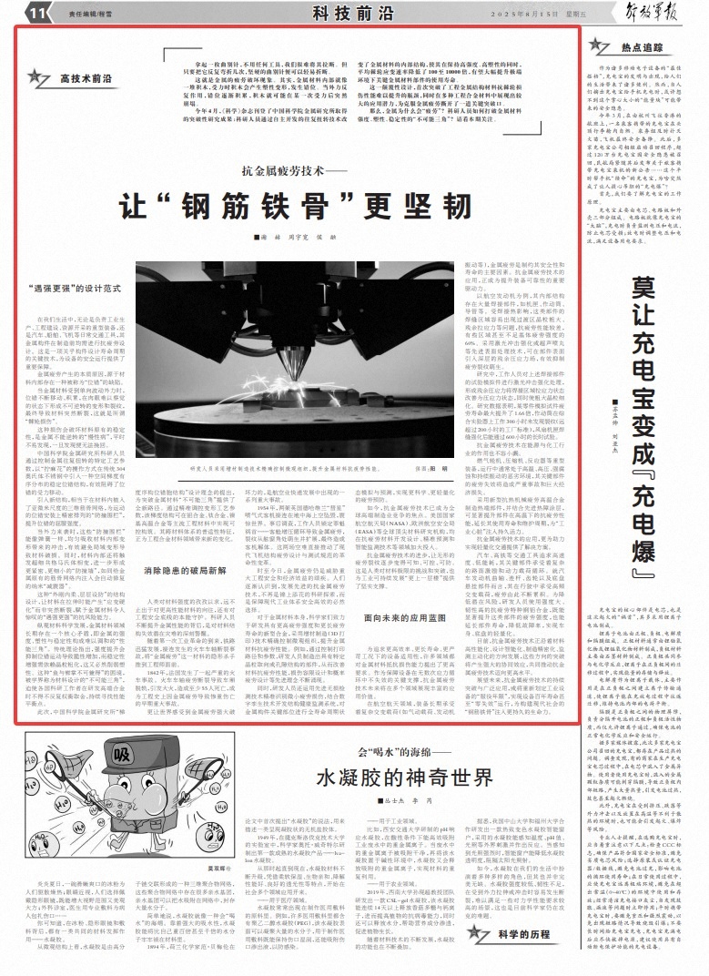 那么,金属为什么会“疲劳”?科研人员如何打破金属材料强度、塑性、稳定性的“不可能三角”?请看本期关注。