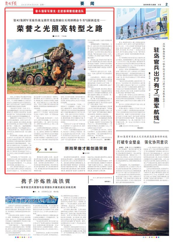 “荣誉是军人的第二生命,作为一支新调整组建连队,我们充分发挥荣誉激励作用,培塑官兵崇尚荣誉、争创荣誉的精气神。”谈及连队组建以来的奋斗历程,该连指导员李昭赫感触良多。