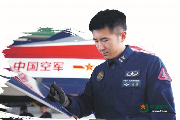 他叫卫星,是空军八一飞行表演队的一名军械员。在今年阅兵任务中,他担负的一项重要职责就是保障表演机能够拉出漂亮的彩烟。