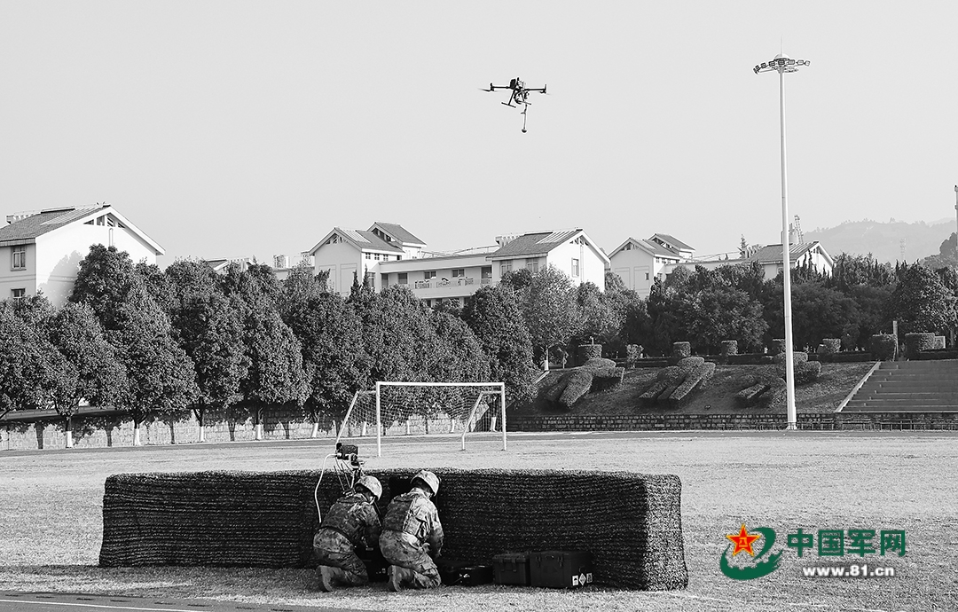 陆军某扫雷排爆大队组织训练,战士操作无人机远程放置起爆装置。赵文环摄