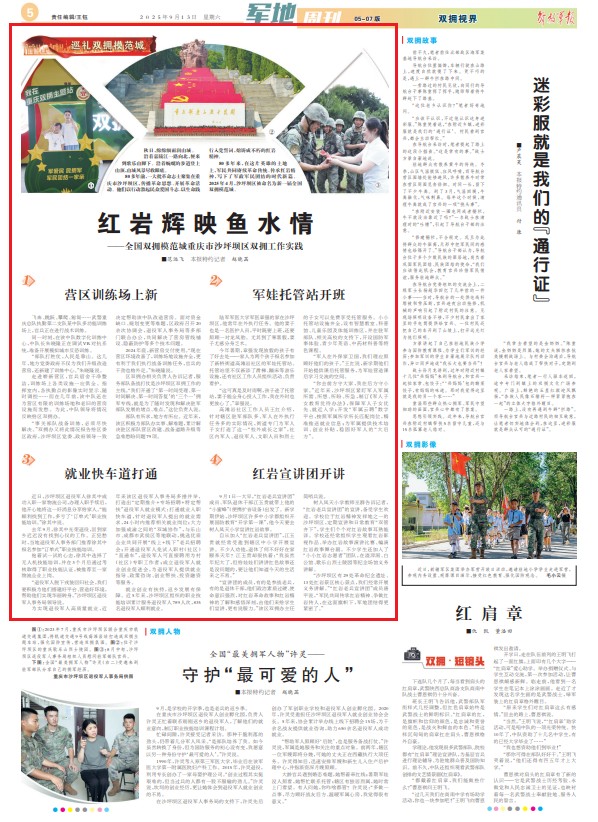 80多年来,在这片英雄的土地上,军民共同赓续革命传统、传承红岩精神,写下了军政军民团结的时代新篇。2025年4月,沙坪坝区被命名为新一届全国双拥模范城。