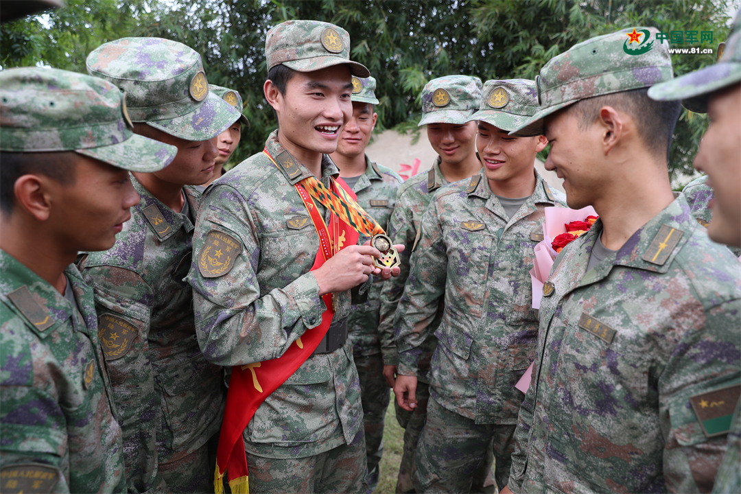 周锋鹏向班里战士讲述参加国际军事比赛经历。李彬 摄
