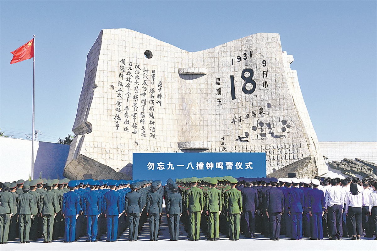 秋日的阳光穿过薄云,洒在残历碑广场巨大的台历形石碑上,石碑上的时间凝固在1931年9月18日,碑面上的弹痕无声诉说着94年前的那段屈辱史。