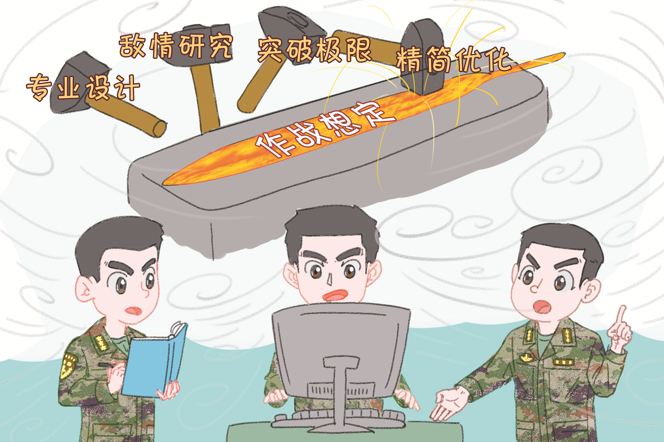思路清晰,旗鼓重振。尽管距演练日期只剩3天,大家还是振奋精神,在作战室掀起密集的“头脑风暴”。在一遍遍反复推倒重来的淬炼中,方案战味愈改愈浓,参谋人员的收获也越来越多。
