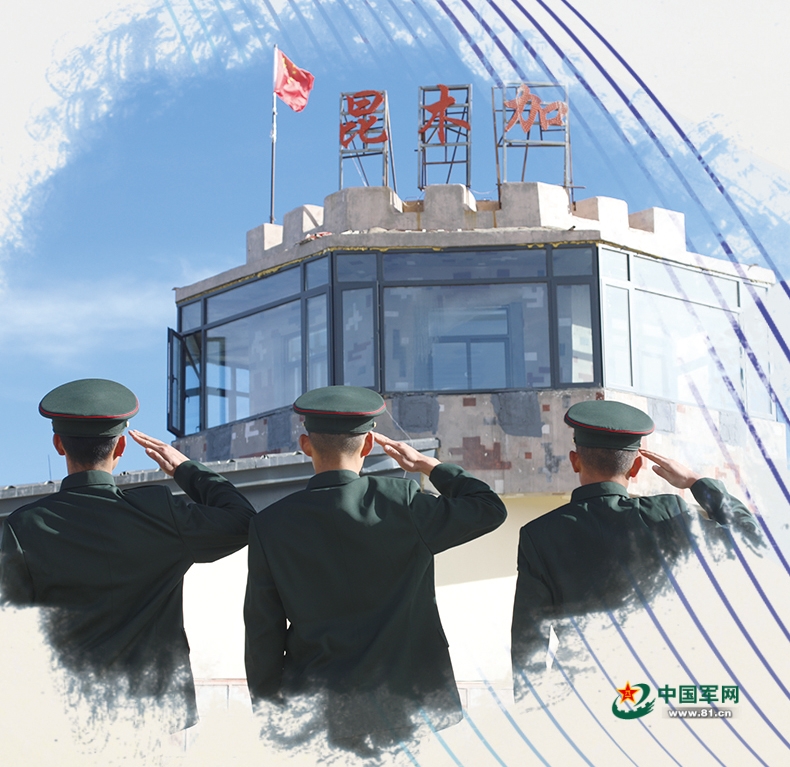 哨所退役老兵向第三代昆木加哨楼敬礼告别。