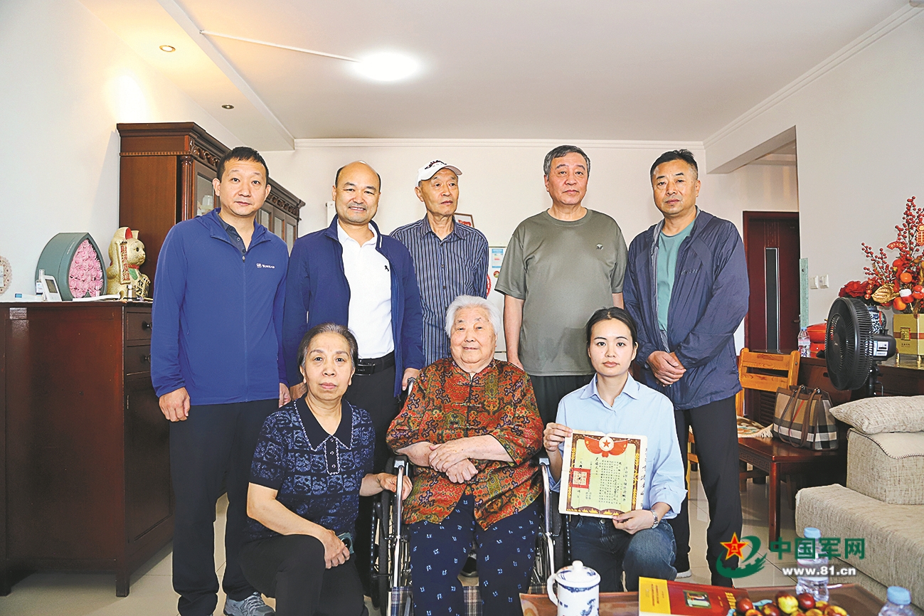 慰问组与烈士关二如的妹妹关淑琴(前中)合影。李 宝摄