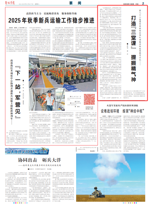 打造“三堂课”,提振精气神。目前,该旅官兵正分散部署在多个点位展开驻训任务。官兵克服地域陌生、地形复杂等考验,先后创新战法训法10余项,涌现出一批善攻坚、精操作的精武标兵。