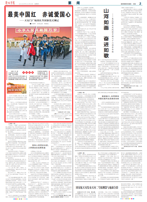 10月1日清晨,天安门广场,12.1万名群众在庄严热烈的氛围中,观看升国旗仪式,共同庆祝新中国76周年华诞。