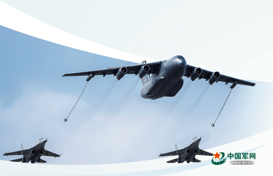 运油-20A单机和歼-16双机加油编队进行飞行展示。黄雨桥摄