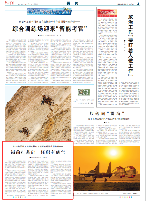 “蔡志丹的成长进步,是旅队探索推行年轻军官轮岗代职机制,夯实任职能力基础取得的可喜成果。”该旅领导介绍,此前,他们在基层调研时发现,不少年轻排长、副连长、副指导员走上主官岗位后,虽工作热情高,但处理棘手问题时缺乏清晰思路和管用招法,既影响基层抓建质效,也容易挫伤个人工作积极性。