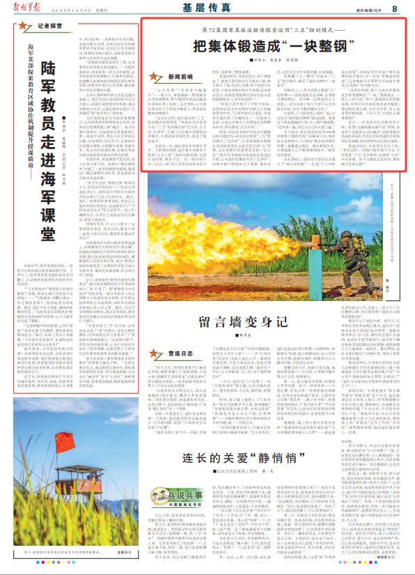 复盘总结时,朱指导员告诉大家:“事实证明,一把钢刀能否锐不可当,不仅要看‘刀尖’是否锋利,也要看‘刀身’淬火质量。战斗力建设也是如此,集体硬才是真过硬!”