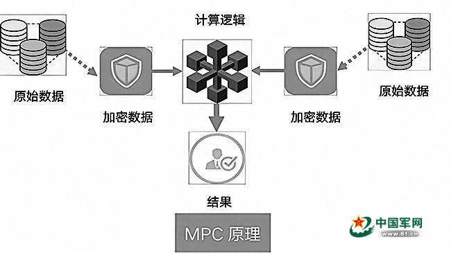 试想这样一个画面,某指挥中心警报骤响,某海域突现不明舰队,一场无声的博弈在指挥员面前展开。想要精准研判对方的威胁等级,必须尽快整合陆、海、空各方电子干扰频率等关键情报数据。借助安全多方计算,关键情报数据可实现安全共享传递:先将核心数据拆成“碎片”,随后将这些“碎片”打乱并分发,形成“你持几片、我握几个”的混合状态,最后依托协同计算机制,将手中碎片完成联合运算,就能在绝对安全的情况下,精准算出指挥员需要的情报数据。整个过程如同将数据锁进“数学黑箱”,实现信息安全共享。