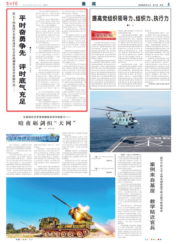 该旅领导介绍,新的评比表彰办法施行以来,他们坚持聚焦主责主业、突出向战务战,大力表彰在各类比武考核中取得突出成绩的官兵,及时召开评比表彰大会,引导全体官兵对标先进学、紧盯差距改,进一步找准奋斗目标、明确努力方向。