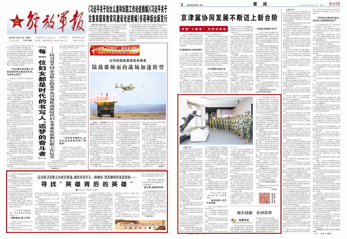 来源:中国军网-解放军报 作者:黄昆仑 危乔巧 责任编辑:徐占虎 发布:2025-10-13 06:24:35