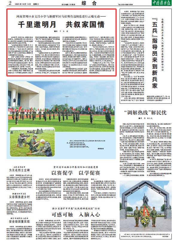 “头顶边关月,心系天下安。”在开设“云端互动课堂”的基础上,周口市还组织优秀学生代表、教师代表分批走进乌拉斯台边防连,通过走近界碑、体验巡逻路、品读边关诗词等活动,进一步厚植家国情怀。