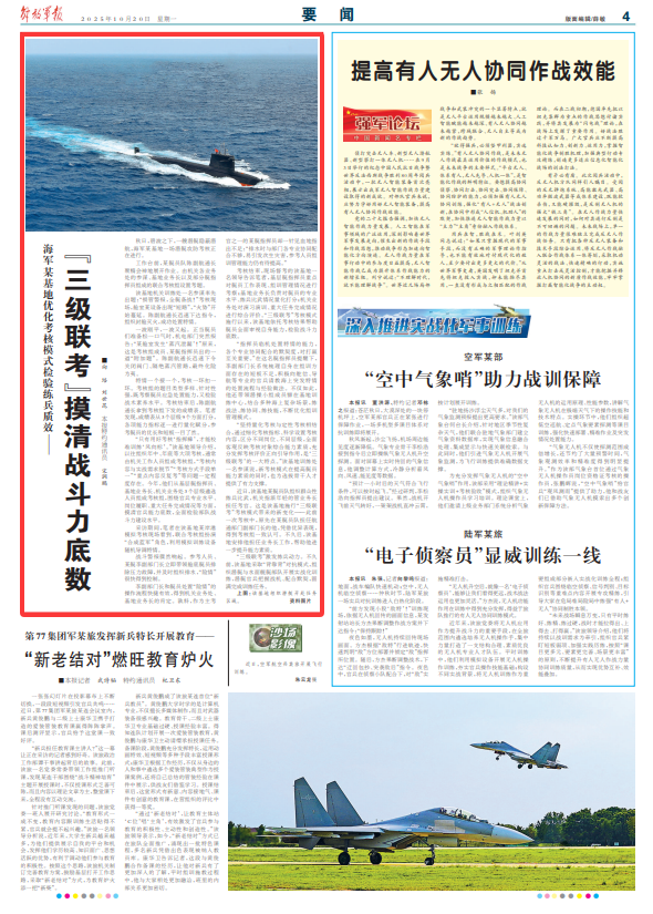 “三级联考”激发练兵动力。不久前,该基地采取“背靠背”对抗模式,组织潜艇与水面舰艇部队开展实战化训练,潜艇官兵把握战机、配合默契,圆满完成训练任务。