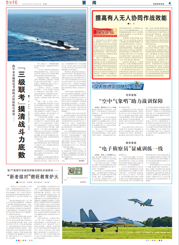 “欲得强兵,必须坚甲利器,实选实练。”有人无人协同作战,是未来无人作战最具运用价值的作战模式,也是未来战争的主要样式。“平台无人、体系有人,无人先导、人机一体”,是智能化作战的鲜明特征。要想提高协同侦察、协同打击、协同突击、协同保障、协同防护的能力,必须加强有人无人协同训练,强化“有人+无人”战法创新,在协同中形成“人信机、机助人”的默契,加快推进无人智能作战力量以“主力”“主角”身份融入作战体系。
