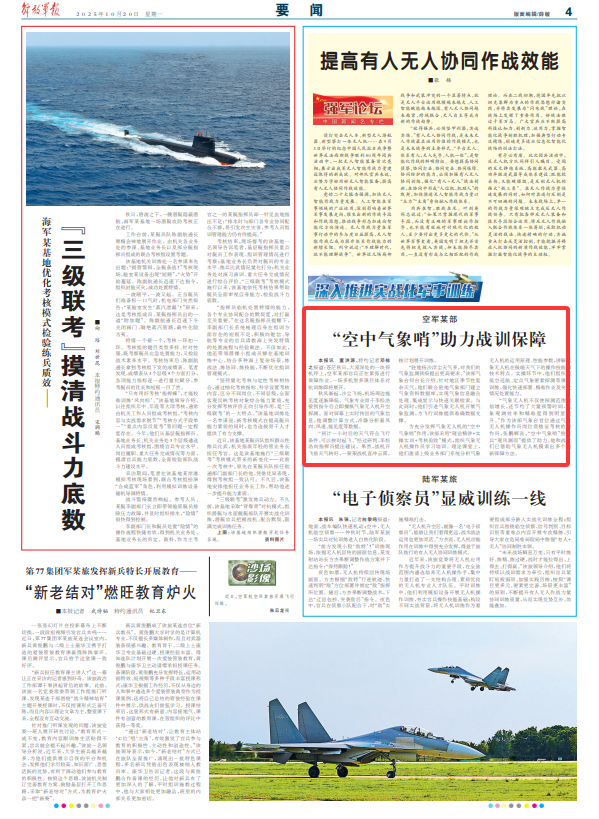 “驻地扬沙浮尘天气多,对我们的气象监测预报提出更高要求。”该部气象台何台长介绍,针对地区季节性复杂天气,他们联合驻地气象部门建立气象资料数据库,实现气象信息融合处理、集成显示与快速关联检索。与此同时,他们引进气象无人机开展气象监测,为飞行训练提供准确数据支撑。