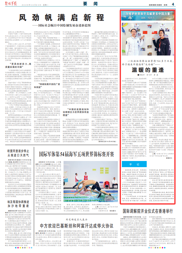 医院船的每次鸣笛,都是对生命至上的庄严致敬;每台手术的成功,都是对人类命运共同体的生动诠释。而这,正是中国军队为世界带来的独特温度,是源自东方的和平守望。